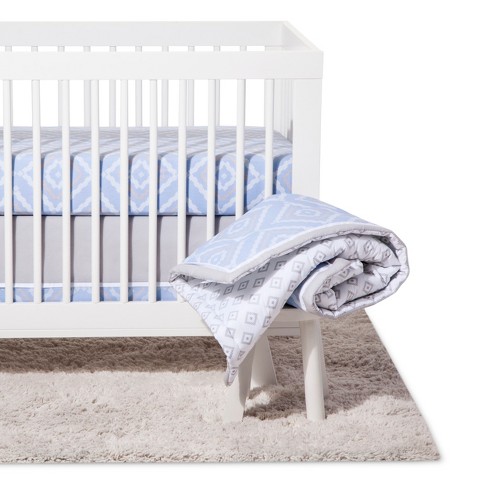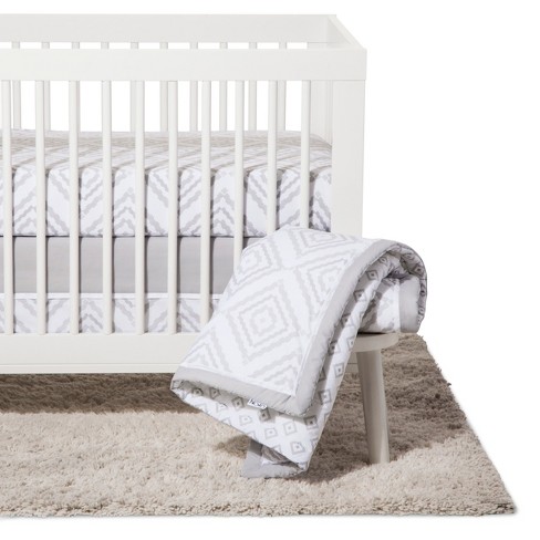 Crib bedding set two by two 4pc cloud island gray.