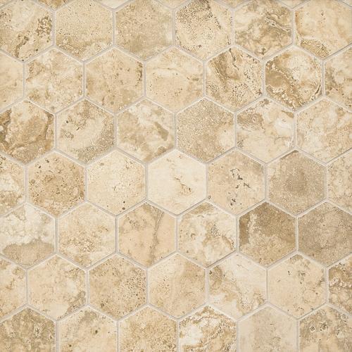 With a polished or high gloss finish this beige tarsus beige porcelain mosaic is 12 x 12.